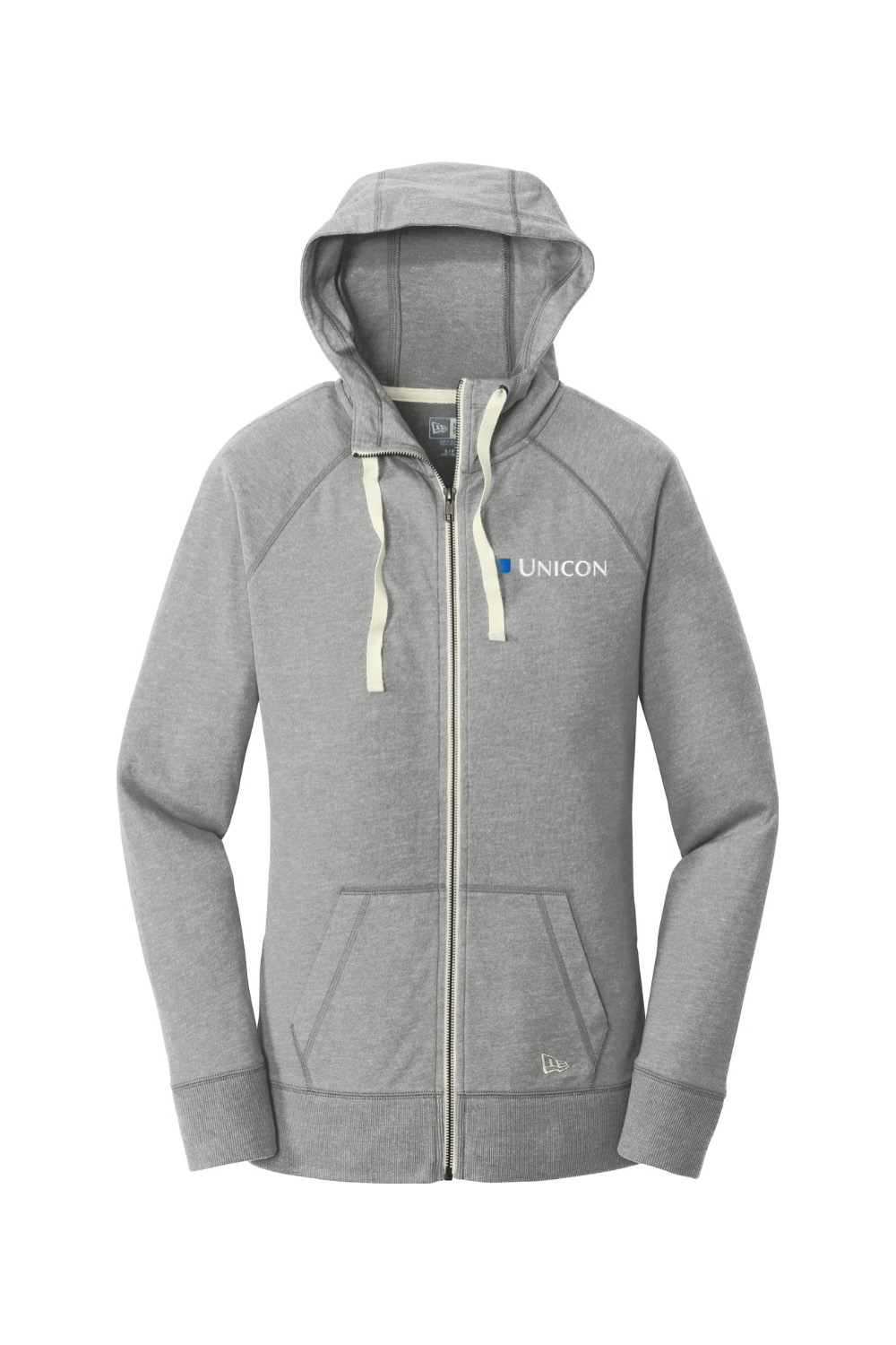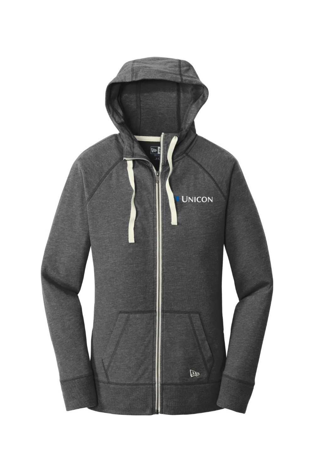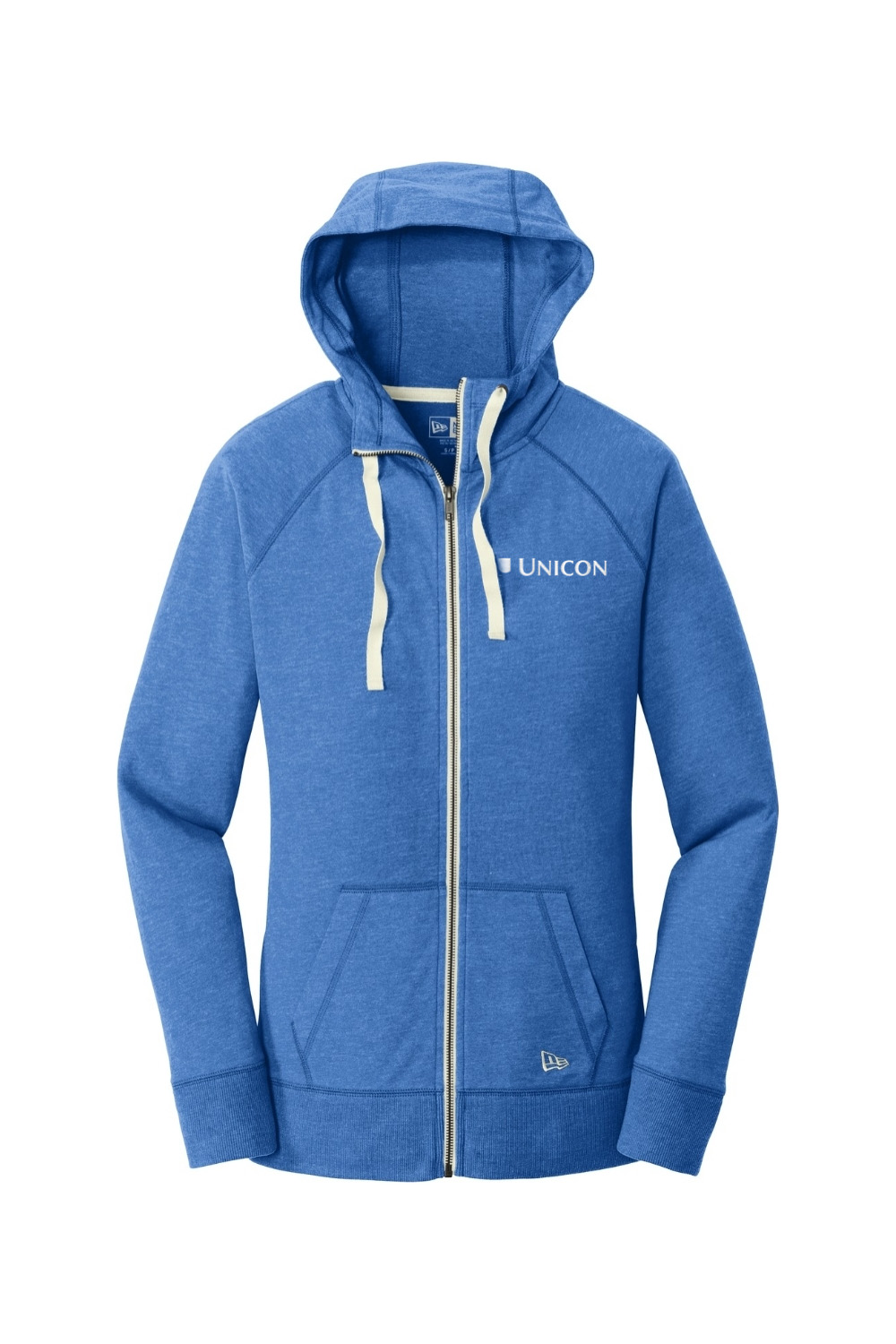 Wrap yourself in laid back comfort with this women’s full zip hoodie, made from sueded cotton jersey for that perfectly lived in, vintage soft feel. Lightweight and easy to layer, it features a three panel hood, contrast drawcords, a smooth metal zipper, and roomy front pockets for everyday convenience. Rib knit cuffs and hem add a clean finish, while the New Era embroidered flag on the pocket adds a signature touch. Finished with an embroidered Unicon logo on the left chest, this hoodie delivers cozy style with a polished, branded look.